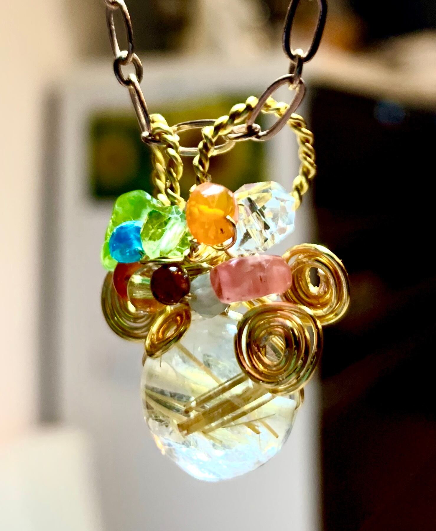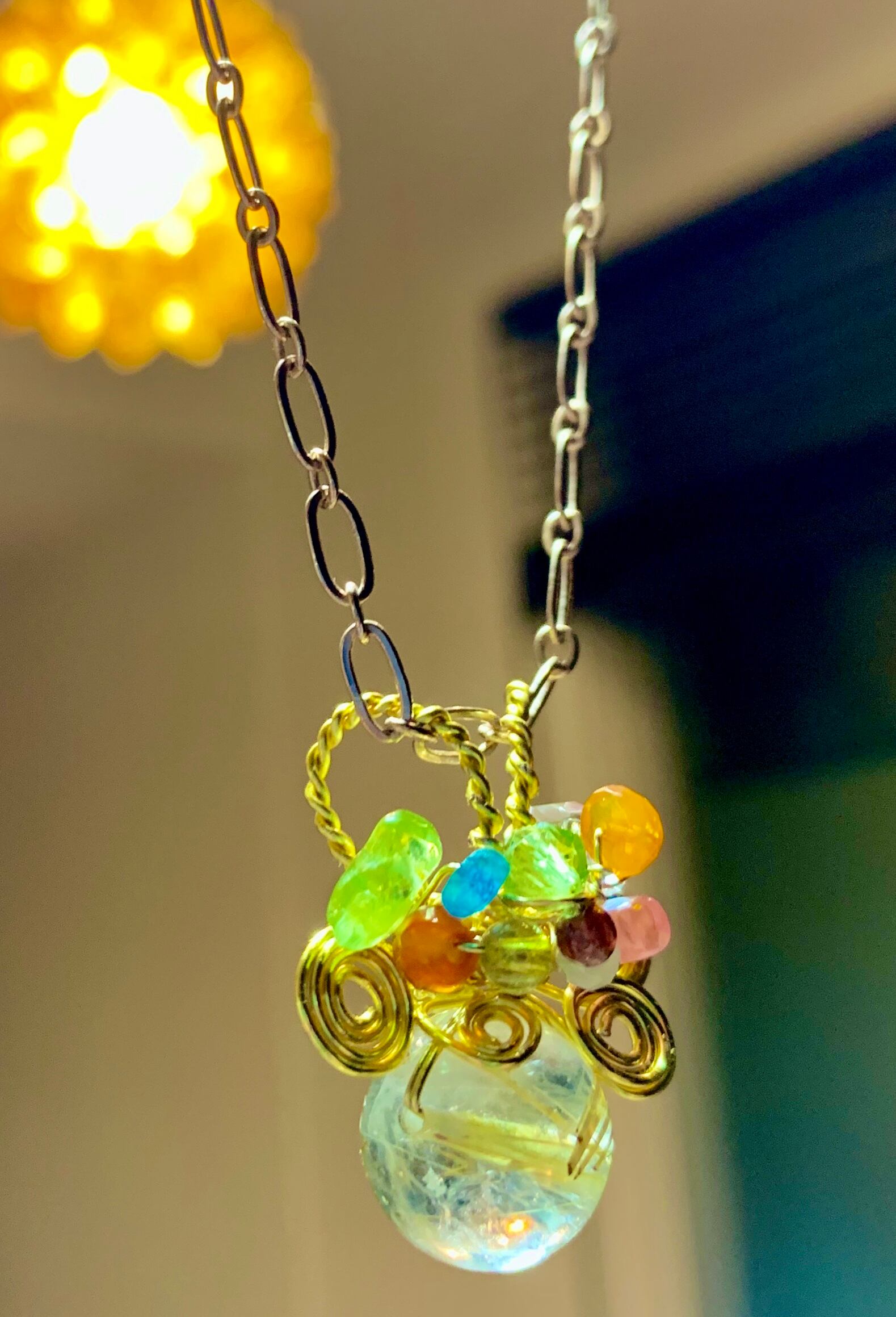 ペリドット、アパタイト、シトリン、ムーンストーン 、ローズクォーツなど天然石をふんだんに使っています。