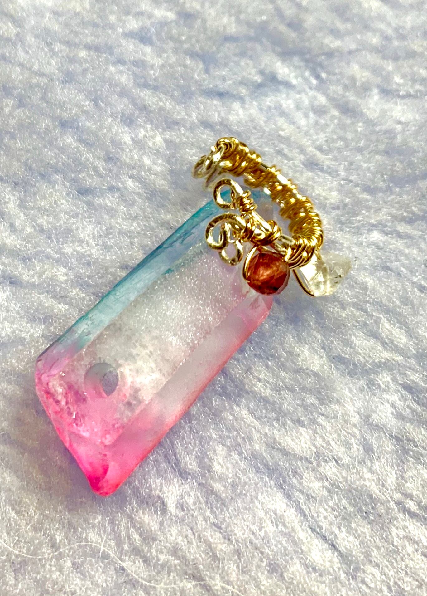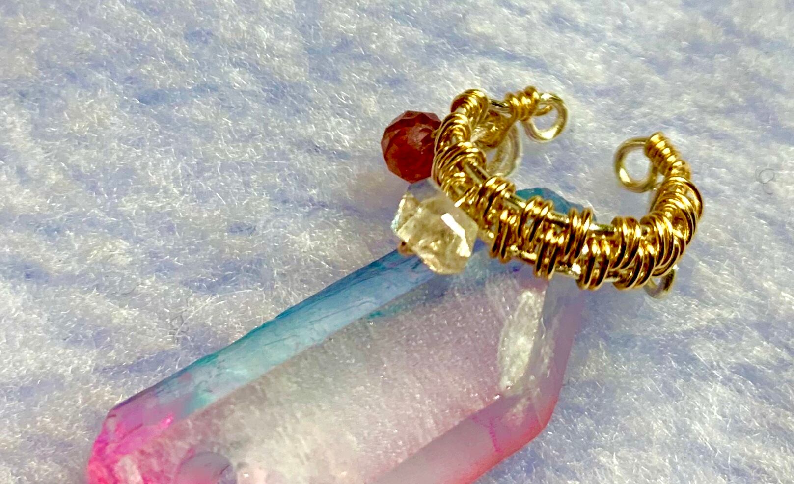 ニューヨーク州のハーキマーでしか採れないクォーツで、加工しなくてもダイヤモンドより強い光沢を放つことからハーキマーダイヤモンドと呼ばれるように。5億年前、今のニューヨークが海の底だった頃に生まれた。同じクォーツとはいえエネルギーはだいぶ違っていて、持つ人の才能を花開かせる、鮮明な予知夢を見せてくれる、子供の可能性を伸ばす、出産のお守りにもされているそうです。
