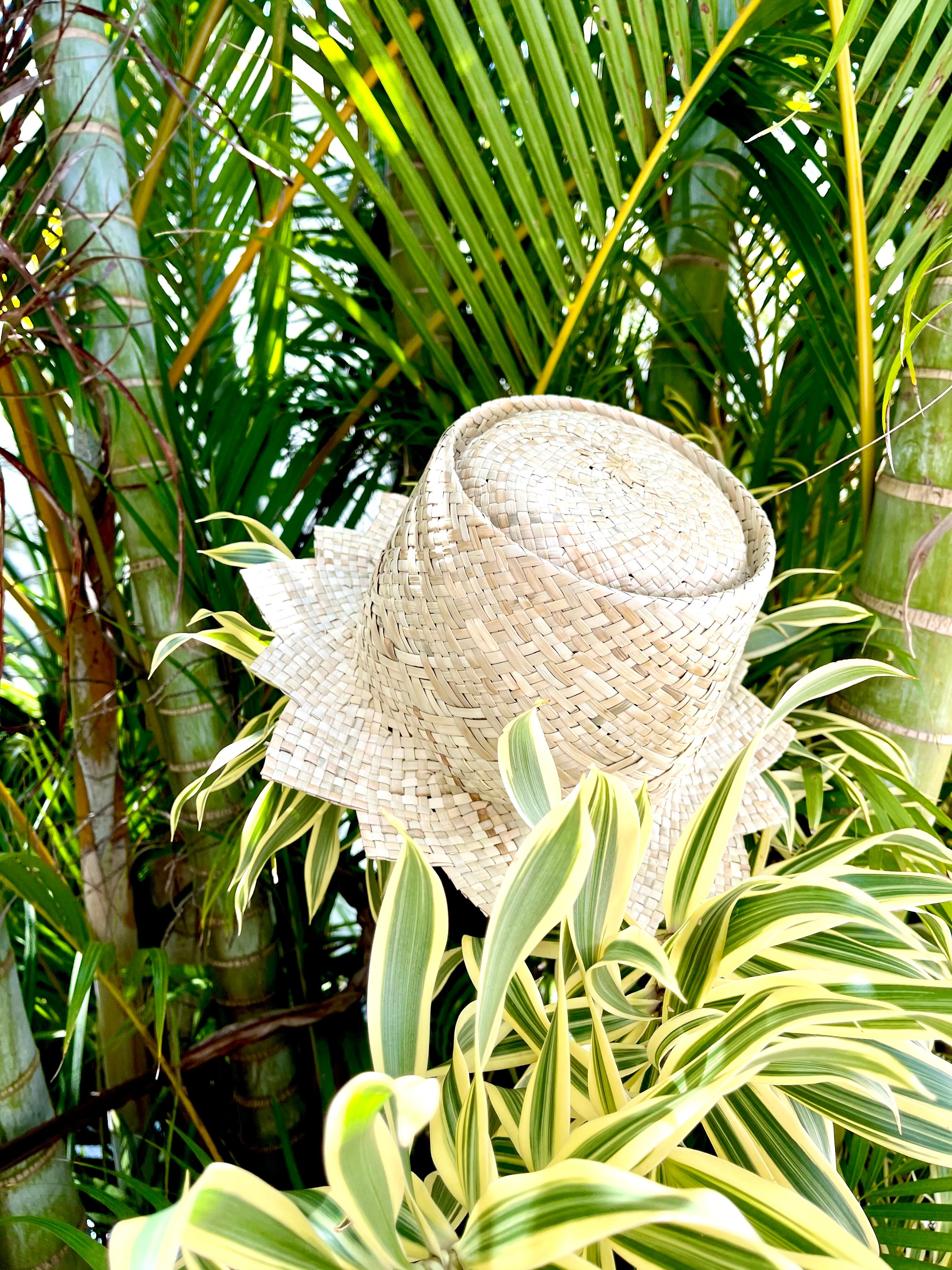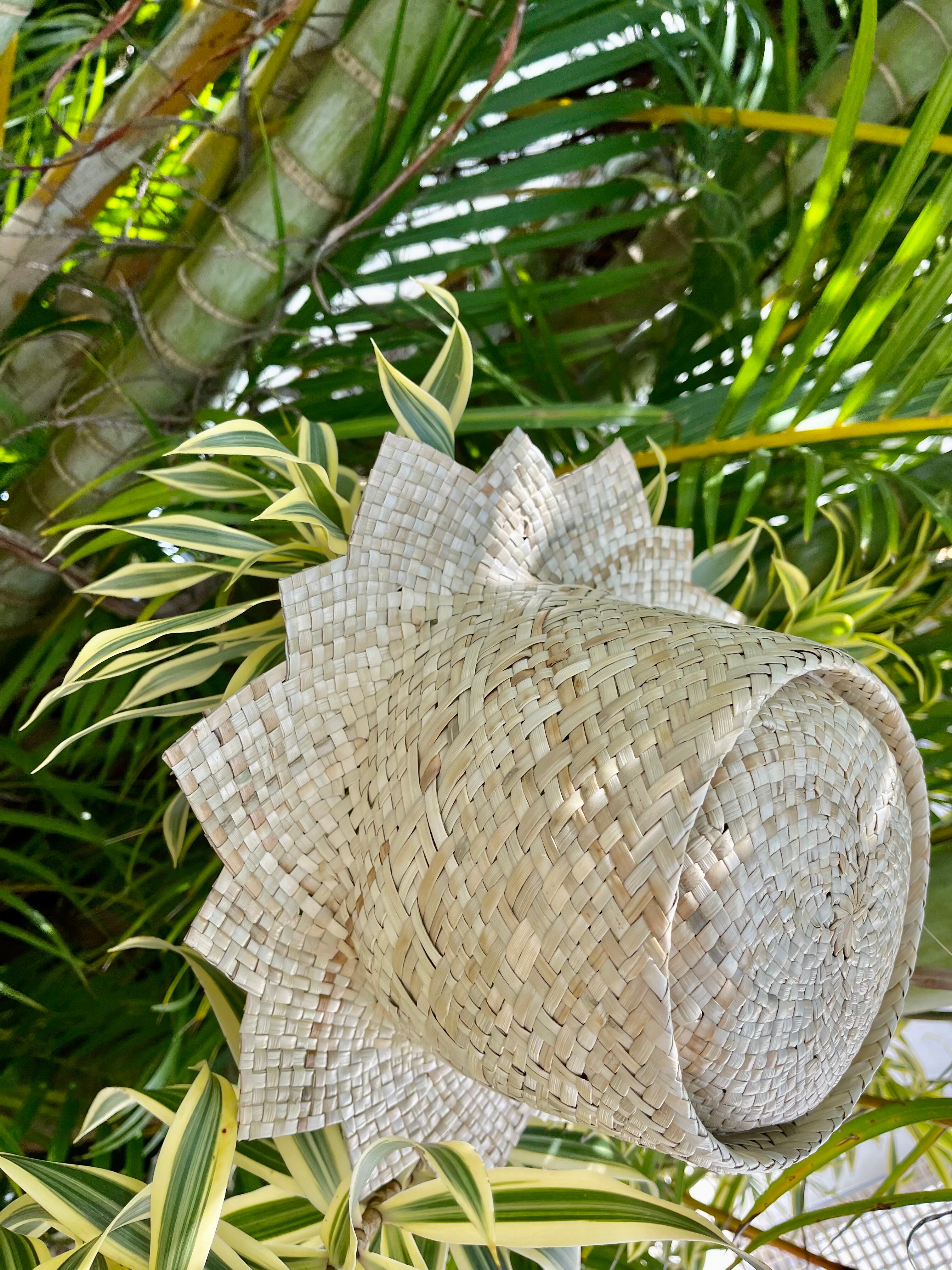 アダン葉で作る伝統の琉球パナマ帽 おひさま型 (写真実物です)