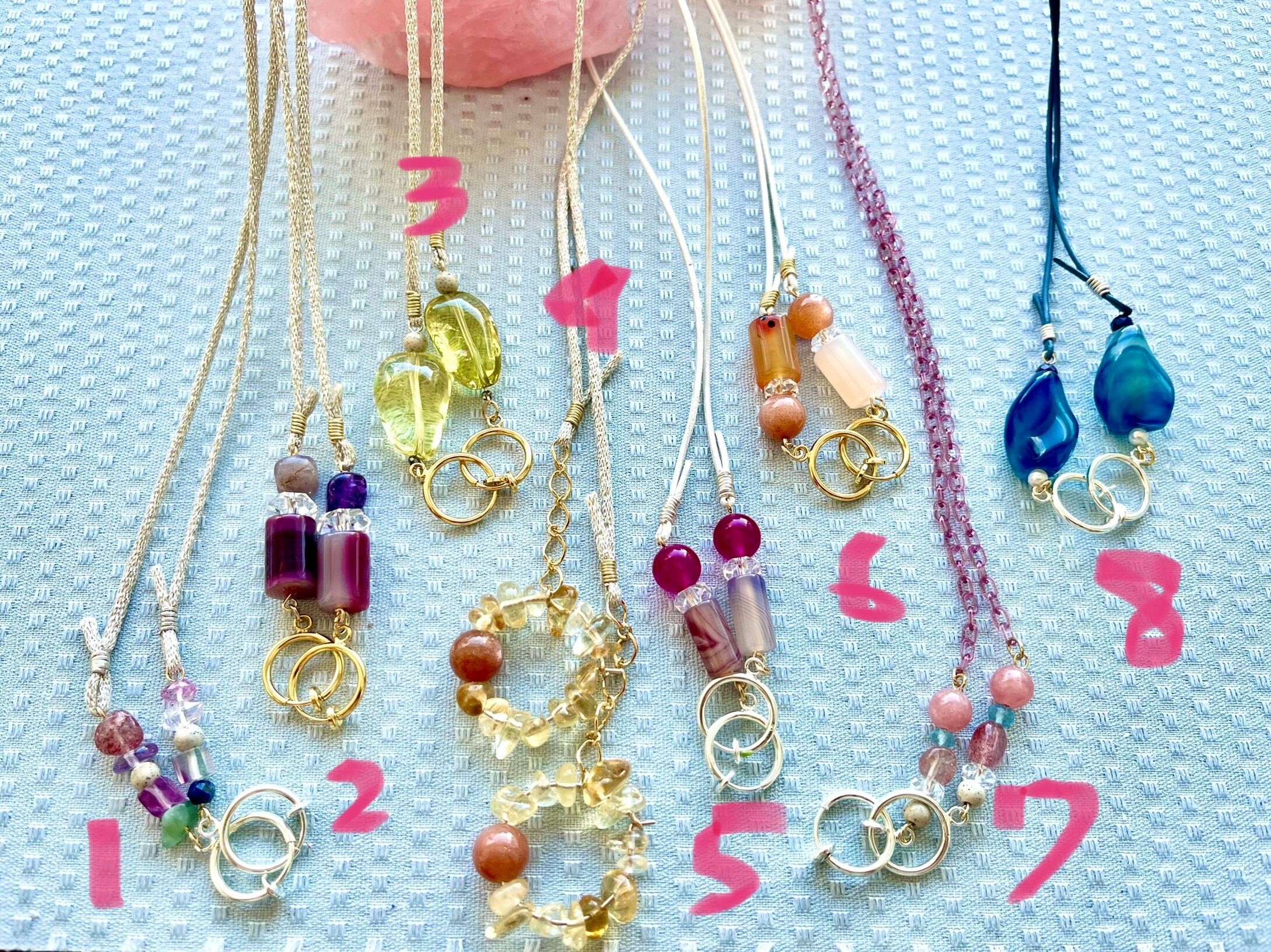 7は軽いピンクのプラスチックチェーン